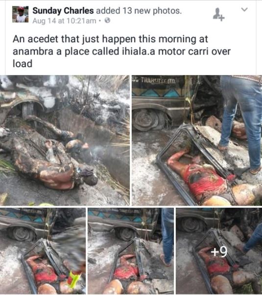 Many people were killed after an overloaded car was involved in a fatal road accident yesterday in Ihiala, Anambra state. The sad incident left many passengers burnt to death as people watched in horror.